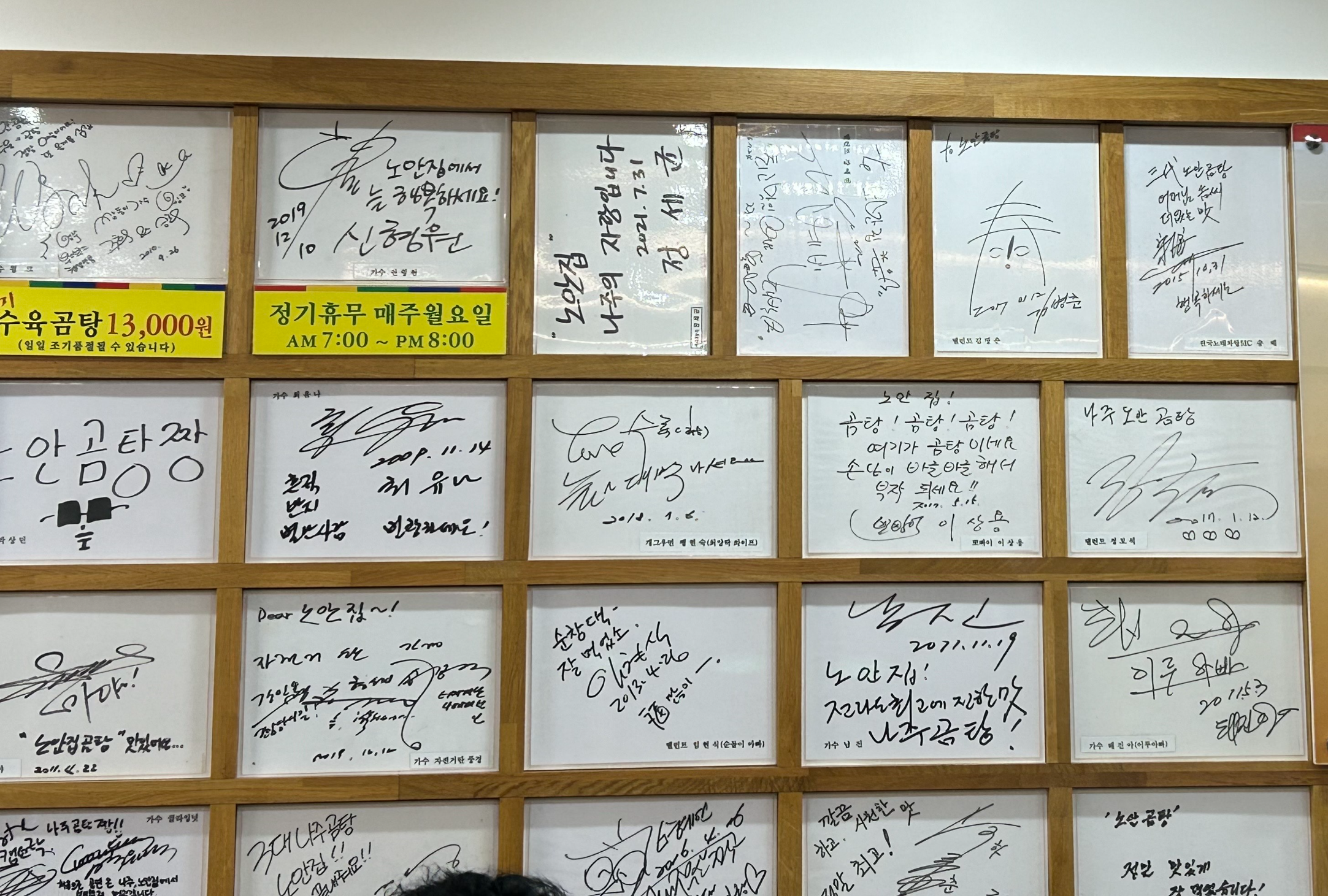 유명인들의 사인과 방송 방영 내용, 그리고 문재인 대통령님 식사하신 자리라구 .. ㅋㅋㅋ 3대째 이어지는 유명 맛집임을 인증하는 자료들이! 인테리어를 대신하고 있어요.
